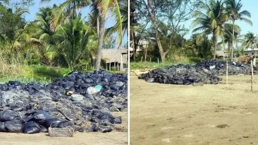 Bolsas con residuos de chapopote permanecen acumuladas en las playas de Alvarado, Pajapan y Coatzacoalcos, a pesar de que la Secretaría de Marina (Semar) lleva a cabo labores de recolección del ...
