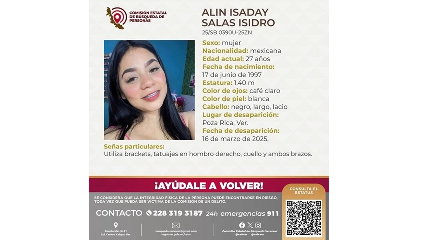 Veracruz, Ver. Alin Isaday, hija de Aida, una mujer buscadora del municipio de Poza Rica al norte del estado de Veracruz, fue privada de su libertad durante la tarde de este domingo 16 de ...
