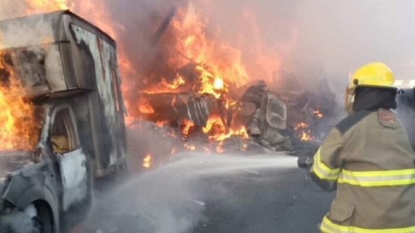 Un accidente entre dos tráilers ocurrido la mañana de este miércoles en el Arco Norte ha dejado como saldo el cierre total de la autopista y una de las unidades incendiada.