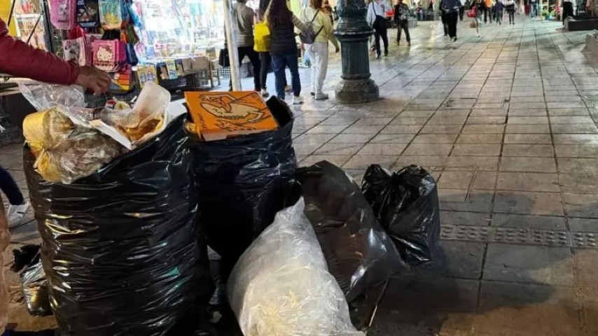 Montoneras de basura asfixian las calles del Centro Histórico de Puebla al término de cada jornada comercial, gracias a los ambulantes.