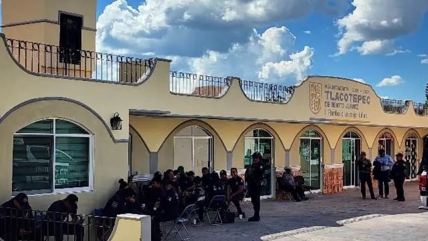 Alrededor de 70 elementos de la Policía y Tránsito municipal de Tlacotepec de Benito Juárez mantienen un paro de labores a las afueras de la corporación.