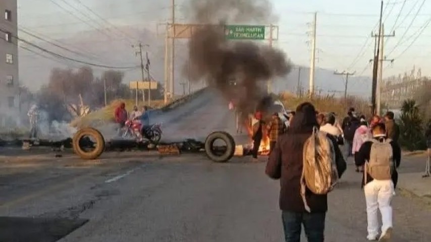 El bloqueo en la carretera federal Tlaxcala–San Martín Texmelucan, a la altura del Puente de Villa Alta en Tepetitla de Lardizábal, mantiene paralizada la movilidad regional por más de 15 ...