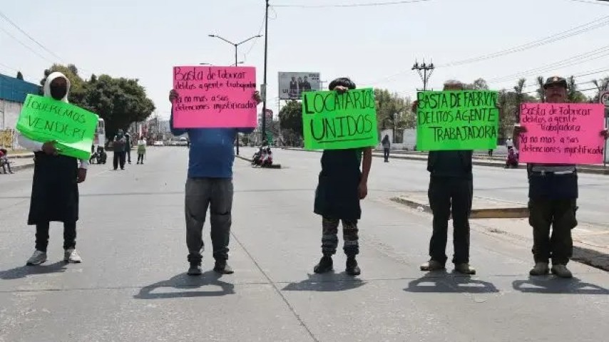 Comerciantes del mercado Morelos cerraron la carretera federal a Tehuacán, a la altura de la Pepsi, en la ciudad de Puebla, para exigir el alto a los cateos realizados por la Fiscalía.