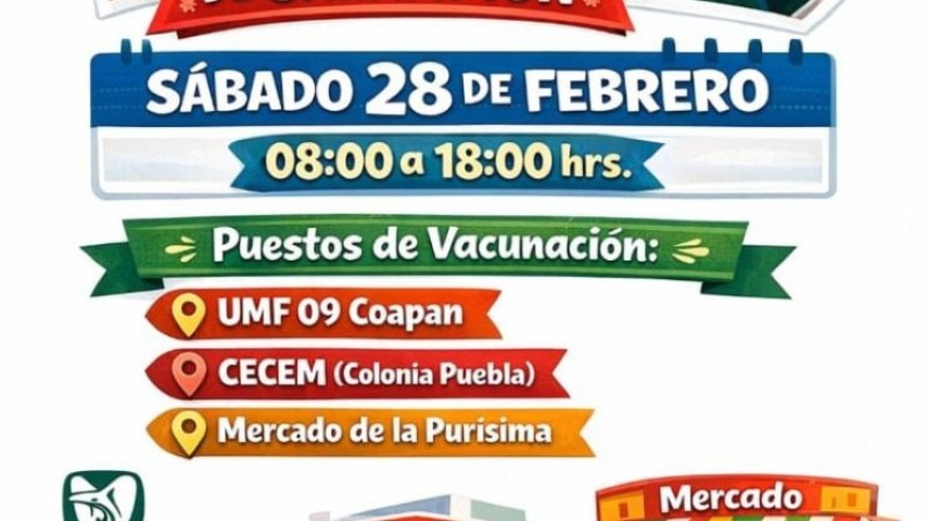 La Unidad de Medicina Familiar No. 09 del Instituto Mexicano del Seguro Social invita a la Jornada de Vacunación contra el Sarampión que se realiza este sábado 28 de febrero de 08:00 a 18:00 hrs, ...